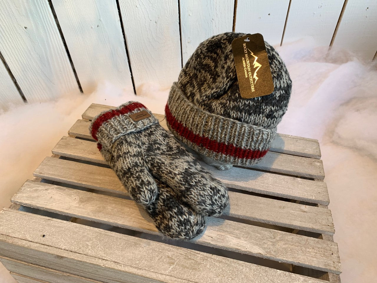 Grey & Red Wool Mitts